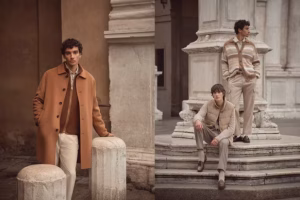 Los abrigos de la colección masculina encarnan el estilo atemporal de la Serenissima: Tejidos italianos de alta calidad, finas mezclas de lana y cachemira, así como patrones de cuadros reinterpretados, definen los diseños. Los cortes puristas y elegantes crean una ligereza natural que, sin embargo, ofrece comodidad y calidez.